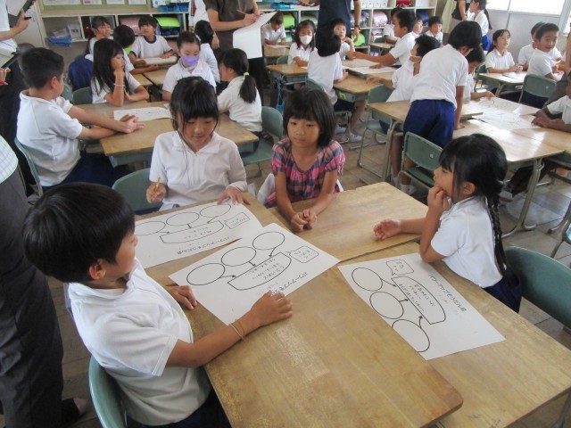 そんな2年生の「わくわく」を学びにつなげていけるような授業を展開し、その後先生たちは、この授業や単元の振り返り・成果・課題について話し合いました。
