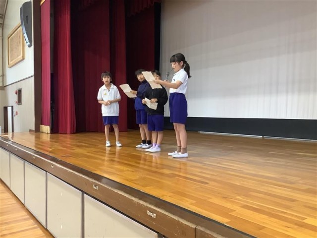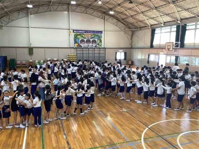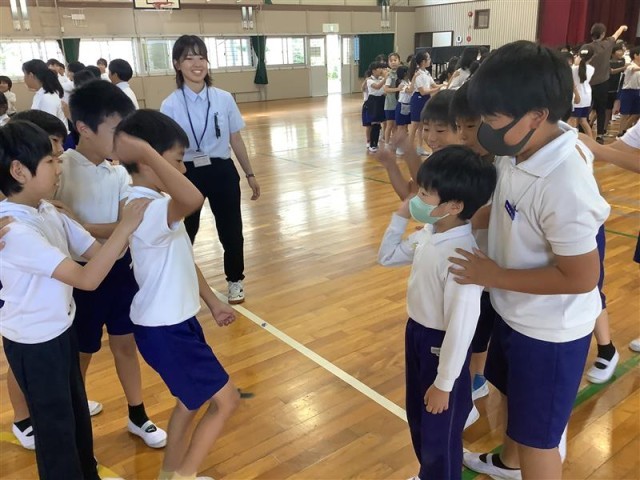 二年生と四年生がペアになり、「ジャンケン列車」を行いました。四年生が一学期から計画を立て、二年生に楽しんでもらえるよう工夫を重ねてきました。当日は笑顔があふれ、列車がどんどん長くつながっていくたびに大きな歓声が広がりました。学年をこえて交流することで、楽しさだけでなく、四年生のお兄さんとお姉さんとして二年生を思いやる心も育まれる時間となりました。