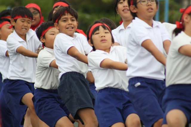 四年生は、嵐メドレーでダンスと綱引きに臨みました。