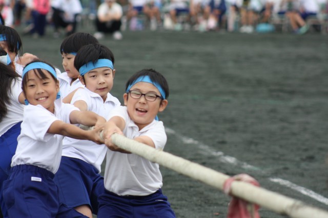 力と力の真っ向勝負の綱引きは、どのクラスも全力で綱を引き合い、最後まで競り合う白熱した戦いとなりました。