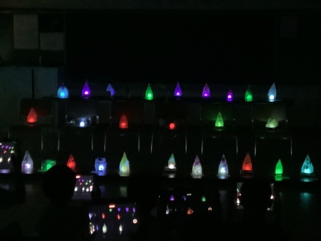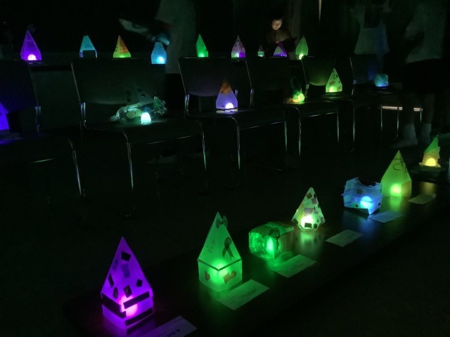 図工の時間に作った「ゆめいろランプ」の点灯式を行いました。