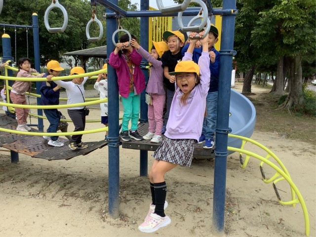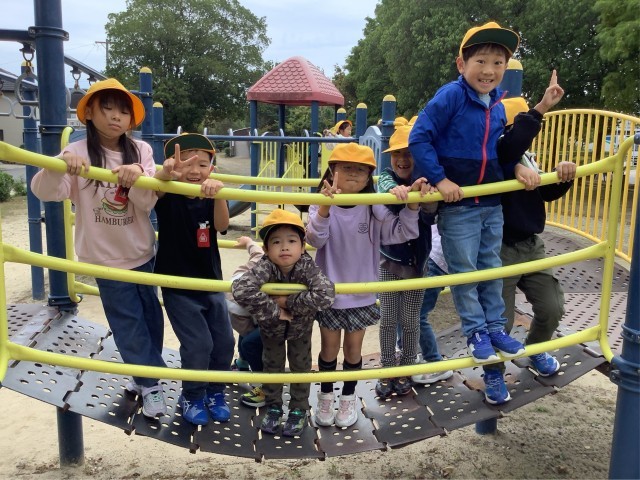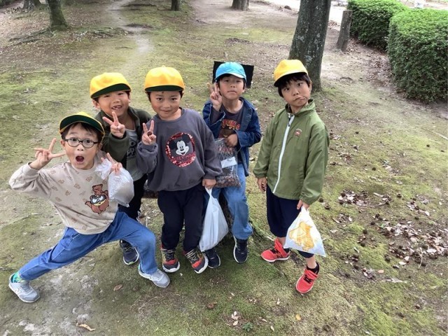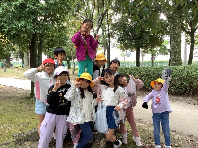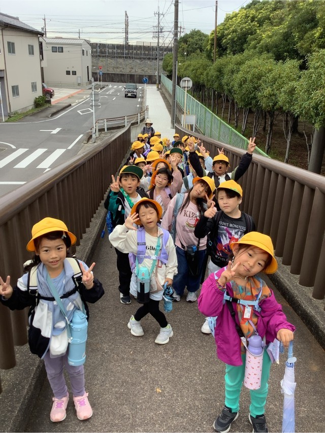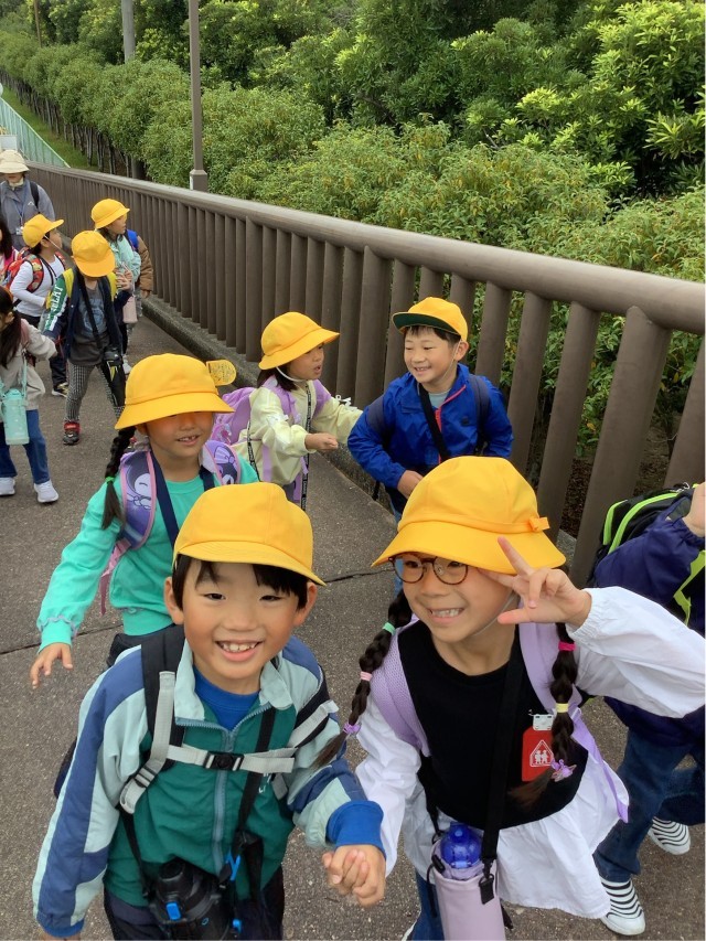 今日は、1年生の初めての遠足でした。みんなで学校から歩いて養下公園へ出発。