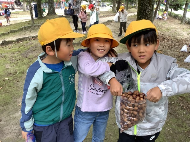 木の下には、どんぐりがいっぱい!なかよく楽しく、たくさん遊びました。