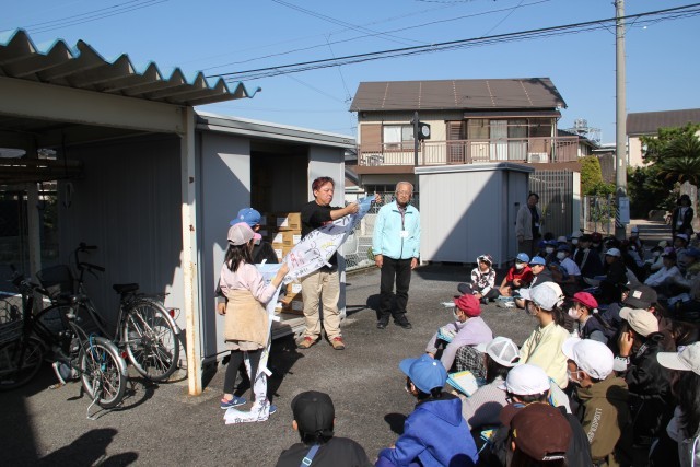 5年生が二本木連合町内会のコミュニティーセンターにある防災倉庫の見学をさせてもらいました。