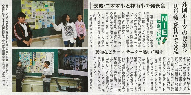 祥南小学校と本校のNIEの取り組み「NIEオンライン発表会」が中日新聞朝刊にて報道されました