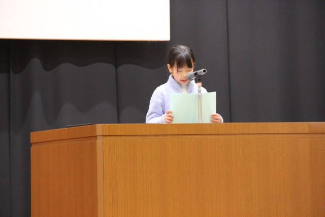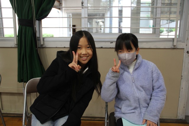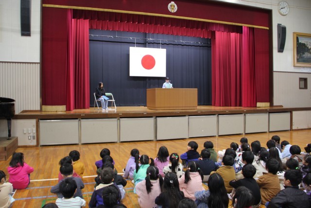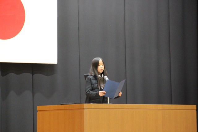 全員が体育館に入って終業式を行いました。代表の2人が2学期にがんばったことや3学期の目標を話してくれました。