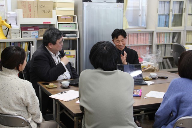 職員室の打ち合わせスペースで6年生の先生たちが「へぇー」「なるほど」「たしかに」「えっ、そうなんですか」「えっすごーい」と、楽しそうに、そして真剣にお話を聞いていました。3学期に総合の授業に来てくださる方だそうです。先生たちが盛り上がっている!どんなお話をしてくださるか、とても楽しみです。
