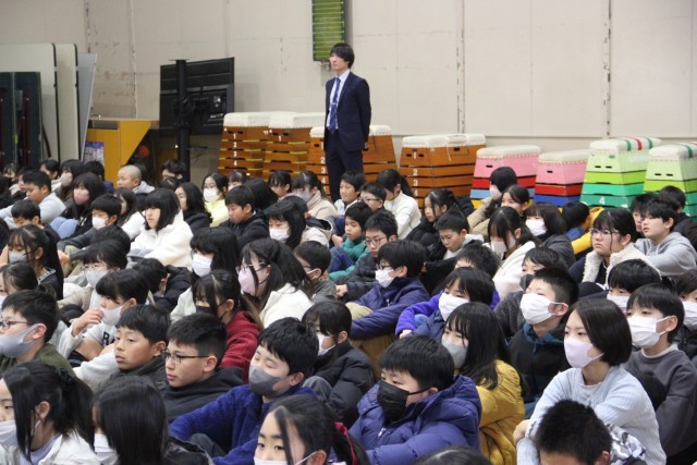 3学期のスタートです。体育館で始業式をしました。寒いなか、代表の2人が今年の目標についてしっかり話してくれました。校長先生からは、あれ?どこかで聞いたことあるぞ?ということばが出てきましたね。