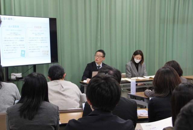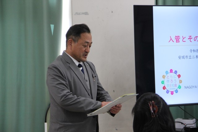 本日午後、名古屋出入国在留管理局の方に来ていただいて、先生たちの研修会を行いました。入管の仕事や在留資格についてなどの法律のことや「やさしい日本語」についてのお話を聞きました。