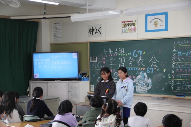 自分たちが調べたことを、おうちの人の前で堂々と発表できました。おうちの人がクイズに参加してくれたり、一緒にカルタをしたり、楽しい学習発表会になりました。(4年4組担任)