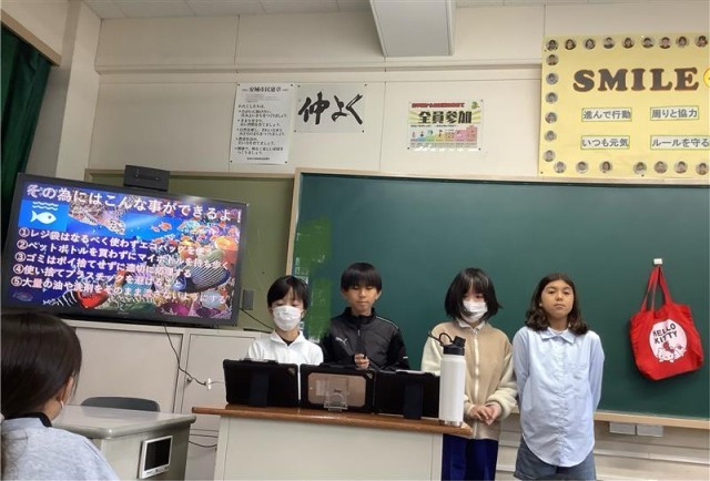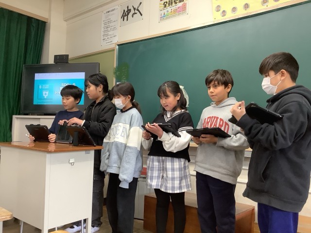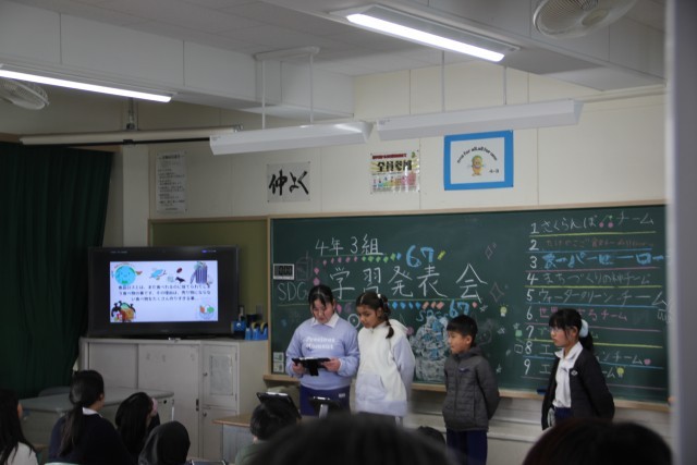 学習発表会では、チームで協力しながら、調べたことやこれまで行ってきた活動、そしてこれからの自分たちに何ができるのかについて発表しました。意見を出し合い、助け合いながら発表を作り上げることができました。