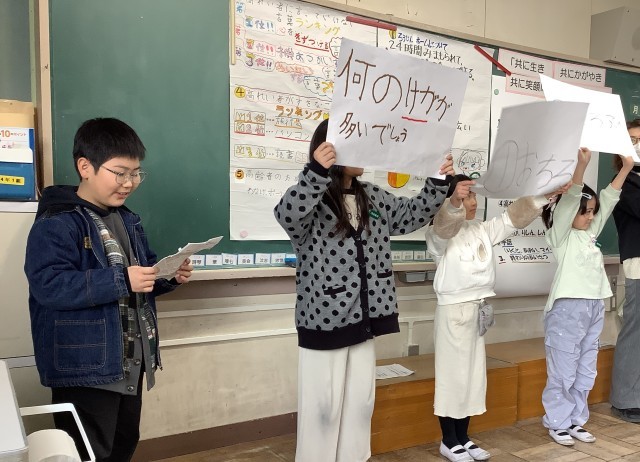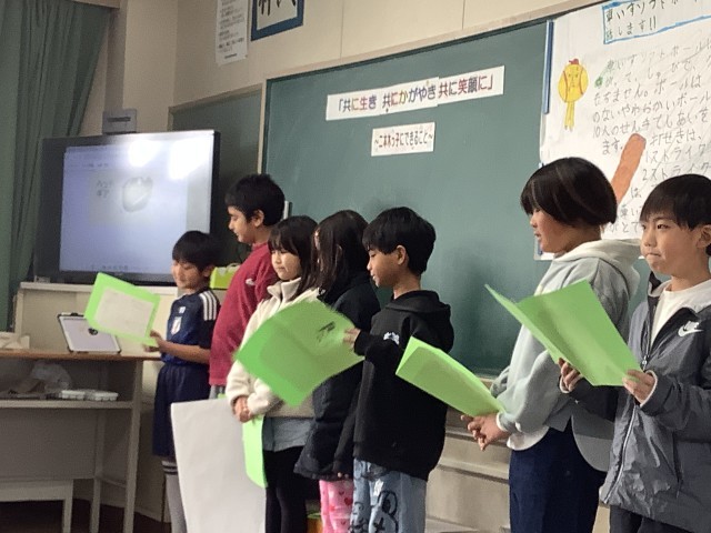 本日、3年生の学習発表会『共に生き 共にかがやき 共に笑顔に ~二本木っ子にできること~』 を行いました。