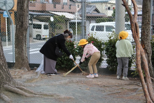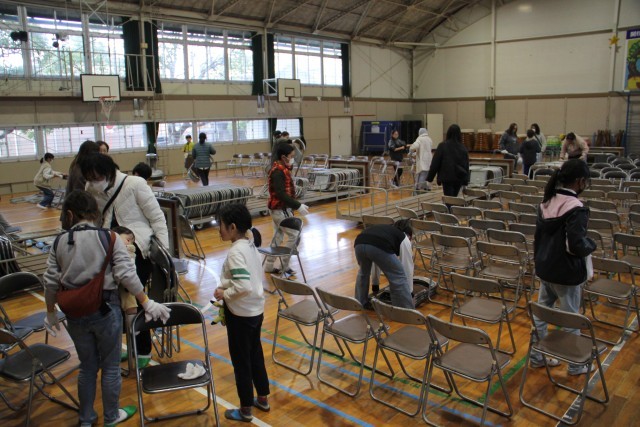 ピカ★ピカボランティアに今回もたくさんの方が集まってくださいました。何度も何度も参加してくださっている方も多いので、溝の中の砂出しや落ち葉の掃除も慣れたものです。あっという間にどんどんきれいになっていました。今回、初めてお願いしたのは、体育館のいすの整とんです。おうちの方が並べてくれて、子どもたちがきれいに拭いて、ちょっとこれは……というのはよけて、で、元の場所に戻してくれました。ありがとうございました。