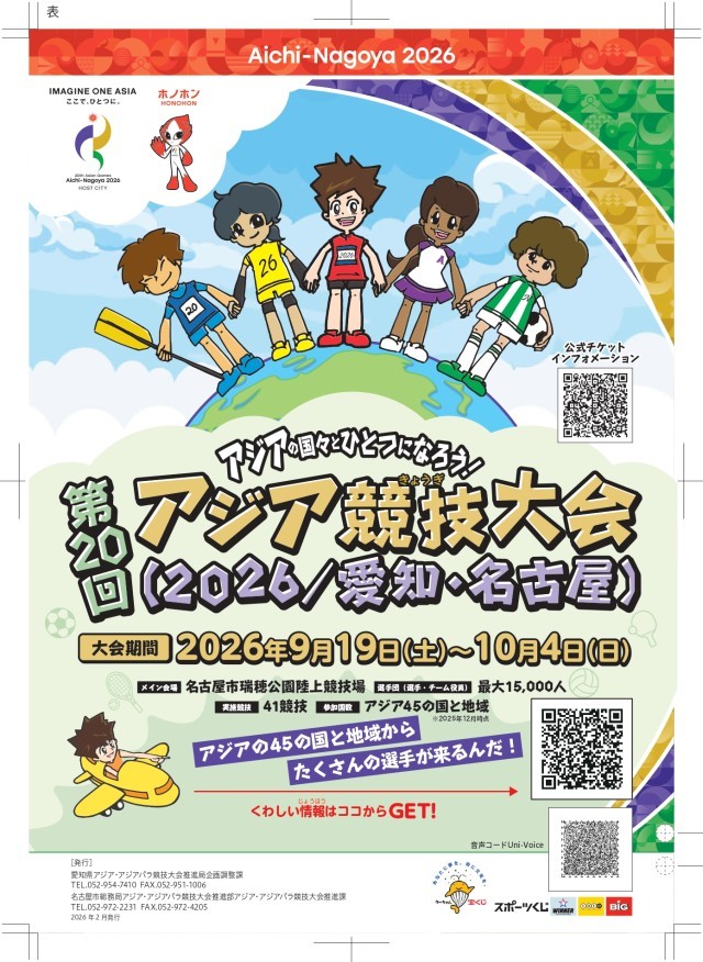 第20回アジア競技大会2026愛知・名古屋 第5回アジアパラ競技大会2026愛知・名古屋のお知らせ