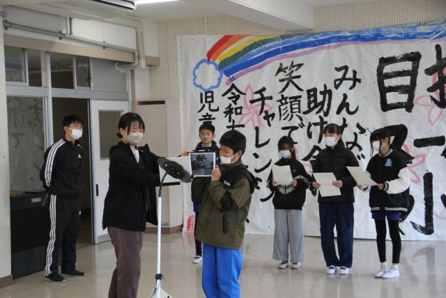 今朝の児童朝会は園芸委員会と給食委員会の仕事について、クイズなどをまじえてのしょうかいでした。そういえば、学校内のいろいろな木に「木の名前」のふだがついています。見かけたら、木の名前も覚えてくださいね。