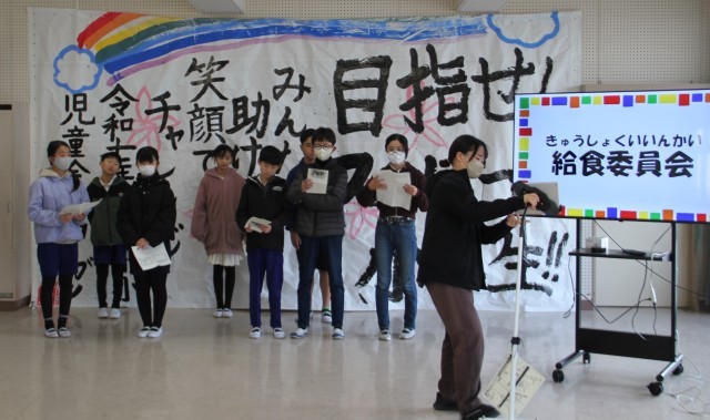 給食委員会の仕事は毎日で大変です。調理場から回収に来る車の時間も決まっています。それに間に合うように、給食委員会の当番の人たちがもくもくとがんばっています。