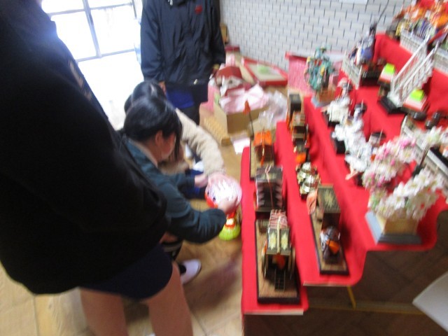 ちょうどシンクロするようにひな人形が飾られていますが、今週からはひな人形が学校のメインです。