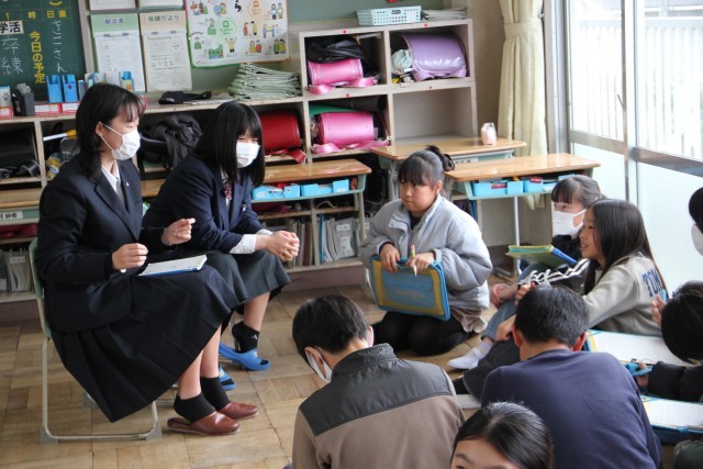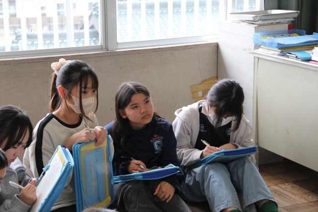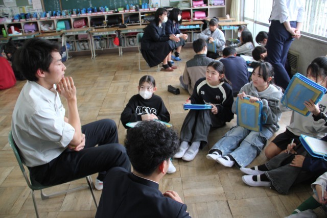 6年生、メモを取りながら真剣に聞いていました。高校生(卒業したばっかりだけど)は「中1の勉強、それも最初の最初の勉強、めっちゃ大事!」と、実感を込めて教えてくれましたよ。