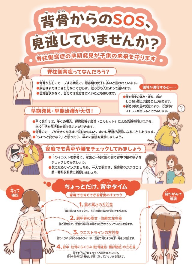 【文部科学省より】背骨からのSOS,見逃していませんか?~脊柱側弯症(せきちゅうそくわんしょう)に注意!~