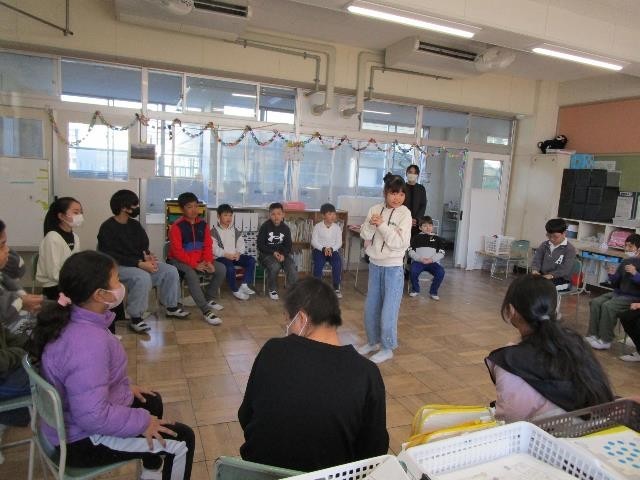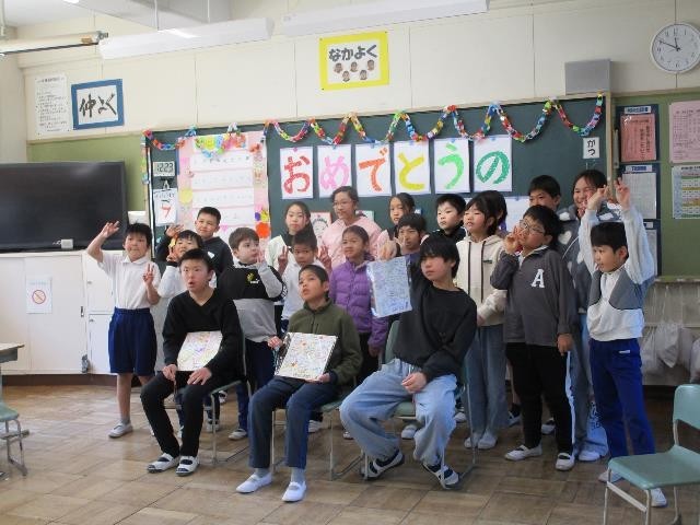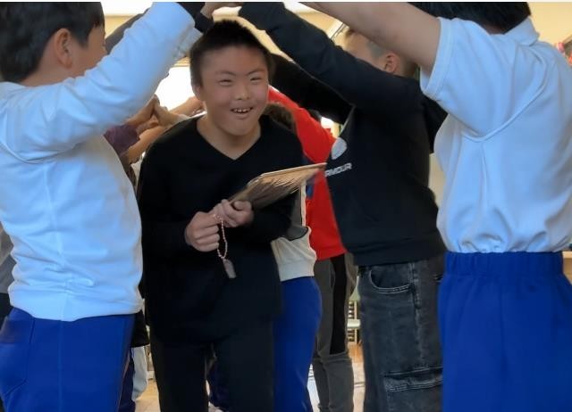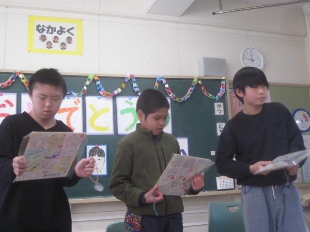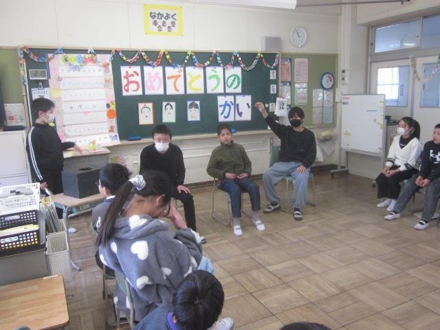 「卒業おめでとうの会」を行いました。一緒にゲームをしたり、プレゼントを渡したりしました。「わたしはだれでしょうクイズ」では、3つのヒント聞いて、ポプラ・とんぼ組の友達の名前を答えました。正解が発表されると、思わず笑顔になったり、「やった!」と声を上げたりと、盛り上がりました。メッセージを書いた色紙と手作りのキーホルダーをプレゼントしました。子どもたちの思いがあふれる、とても温かい雰囲気の会となりました。