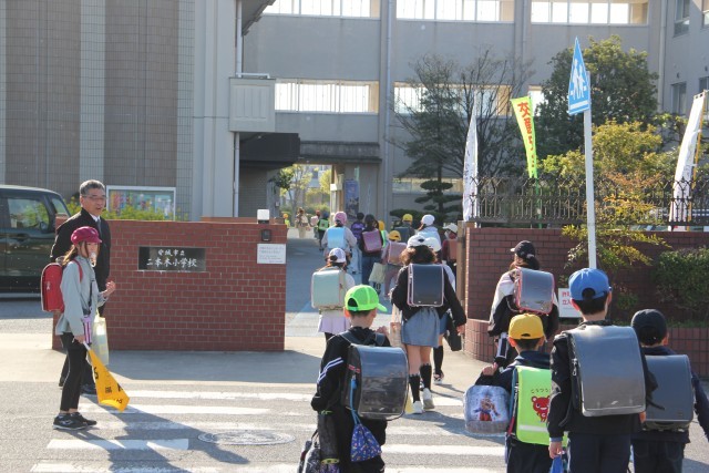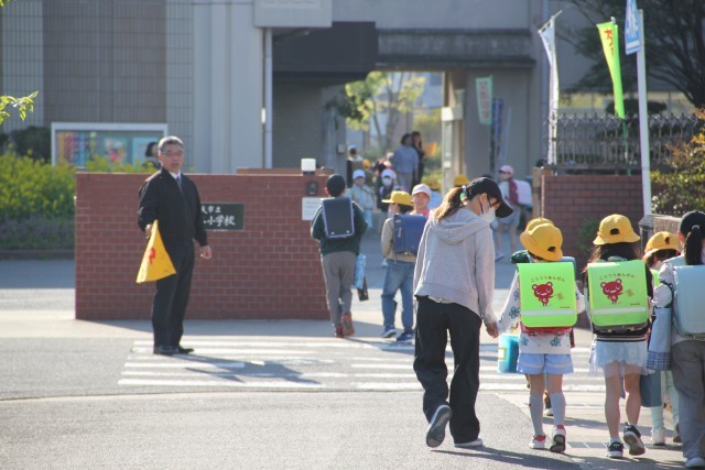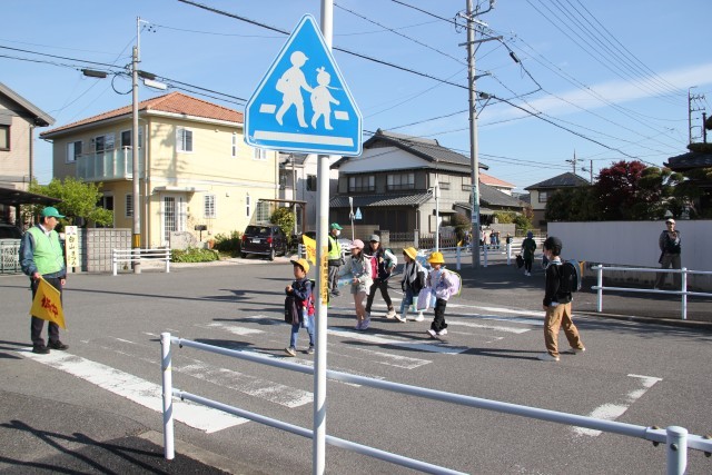 今朝から1年生が入っての新しい班で登校しています。1年生と手をつないで歩いている班長さんや1年生のお道具箱を持ってくれている5・6年生をたくさん見かけました。おうちの人も様子を見についてきてくださいました。班長さんがしっかり旗を振って、横断歩道を渡らせてくれました。