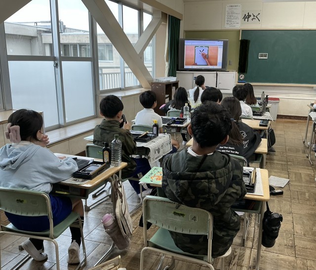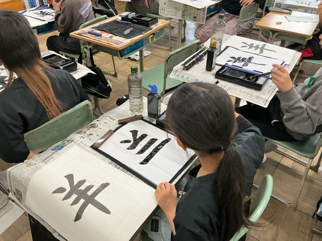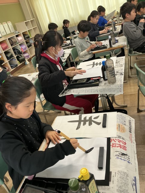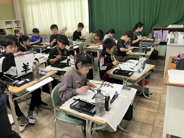 書写の授業で毛筆を行いました。今年初めての漢字は「羊」でした。1画1画丁寧に、背筋を伸ばして書くことができました。