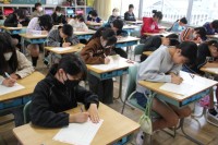 3年生に手伝ってもらって、正門から入ったところの花だんにヒマワリを植えました。10日ほど前にポットに種まきもしてくれました。だいぶ大きくなったので、植え替え。最後の片づけまでしてくれました。