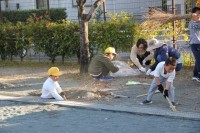 おうちの人がたくさん来てくださいました。おうちの人と一緒に落ち葉を集めたり、溝の...