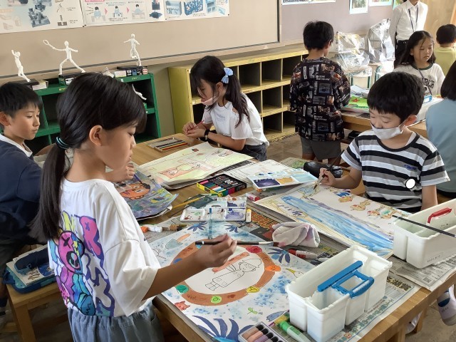 10月16日 4年生 図画工作「お話の世界をえがこう」