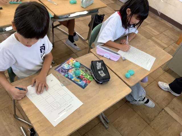 ねん土を細長くしたり、小さくちぎったり、いろいろな形にして手で持って重さをくらべました。