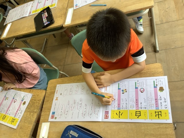 習ったばかりの漢字が嬉しくて、目をキラキラさせて取り組んでいました。