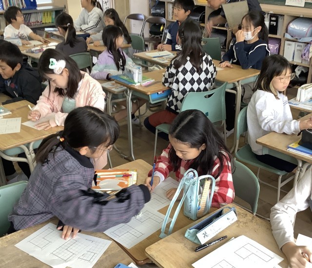 10月28日 4年生 算数 かわった形の面積の求め方を考えよう
