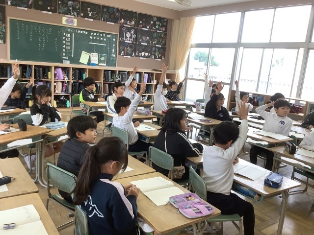 2組は「何倍でしょう」の学習の様子です。2組さんは、どの授業でも先生の問いかけに対しての反応がすばらしいです。先生の話も友達の意見も一字一句聞き漏らさないように、目と耳と心で聞いています。この後、ペアでの話し合いになりましたが、黒板の図を指さしながら、わかりやすさを意識して考えを伝えていました。
