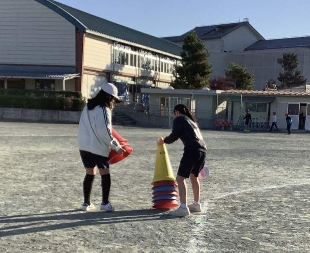 体育委員の子たちが、かけ足タイムが終わると、すぐに駆け寄って片付けてくれていました。