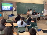 3組は理科「太陽の光」の学習の様子です。鏡で跳ね返した日光を重ね、温度を測りました。はね返した光を重ねるのは難しいのですが