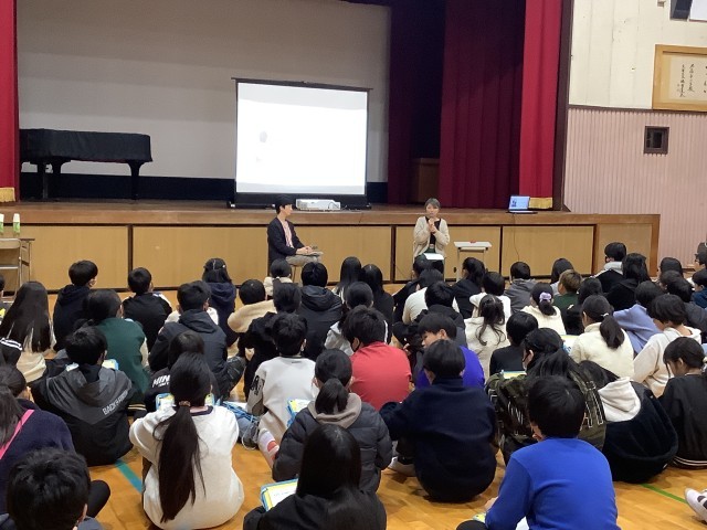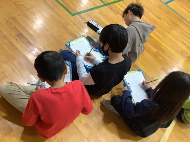 6年生だけでなく、5年生も参加しました。5年生の子も、熱心にメモをとって聞いていました。