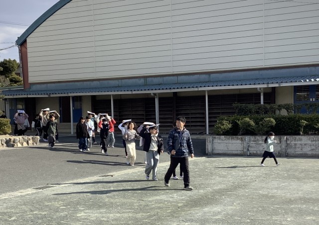 近くに先生がいないときにでも、安全に避難する方法を確認するため、実施日時を児童には伝えずに、避難訓練を行いました。