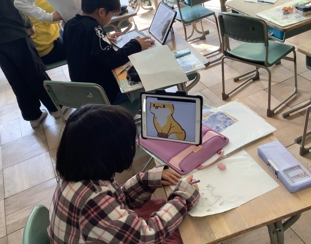 魚や動物や恐竜など、自分の好きなものの絵を描きました。