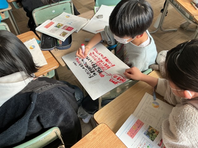 資料から分かったことやそこから考えたことをまとめる学習に入りました。