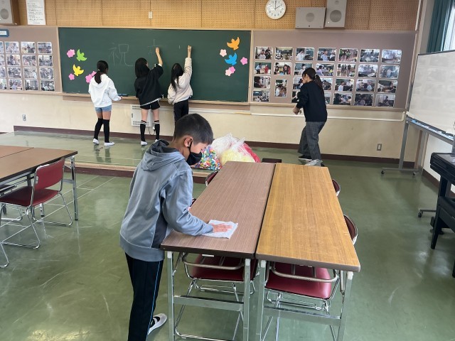 5年生が卒業式準備をしました。