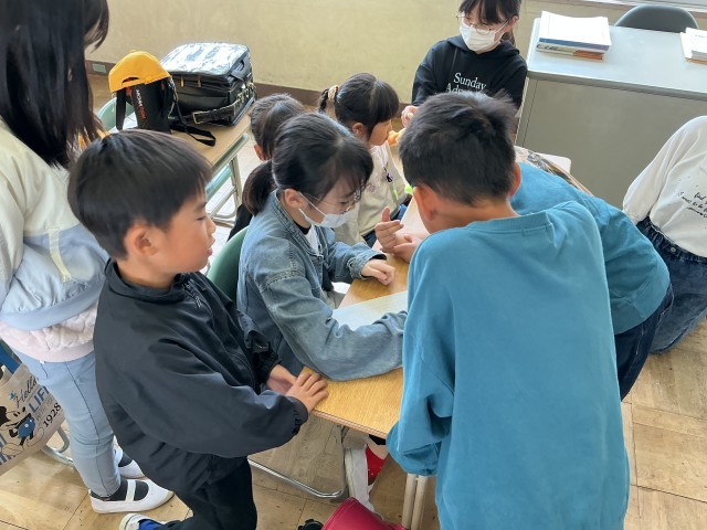 通学班集会を行いました。集合時間を確認したり、並び方を考えたりしました。