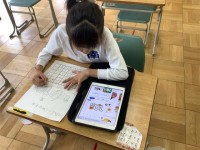 5月1日、共同で大きなこいのぼりを作りました。まず、うろこの形に切り抜いた色画用紙に1人ずつ色とりどりの手形をおしました。それを自分のビニル袋に貼りつけ、クラス全員をつなぎました。2匹の大きなこいのぼりができ上がりました。5月2日には、みんなで揚げる予定です。