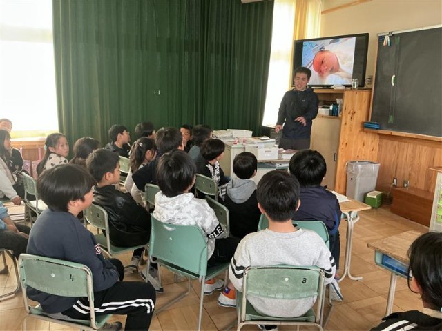 鈴木智也先生に、生まれたばかりの命の誕生の写真を見せてもらいました。 生活科で学んだことを振り返りました。
