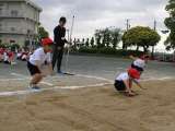 1年生が初めての体力テストに挑戦しました。運動場で50m走・ソフトボール投げ・立ち幅跳びの3種目を測定しました。どの子も精一杯の力を出して頑張っていました。