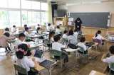 アサガオの観察をしました。タブレットで写真を撮ったり、実物を目の前にしたりして、以前と変化したことを見つけました。「葉っぱが増えて、大きくなっています。」「前よりも茎が伸びていました。」などと発表し合いました。