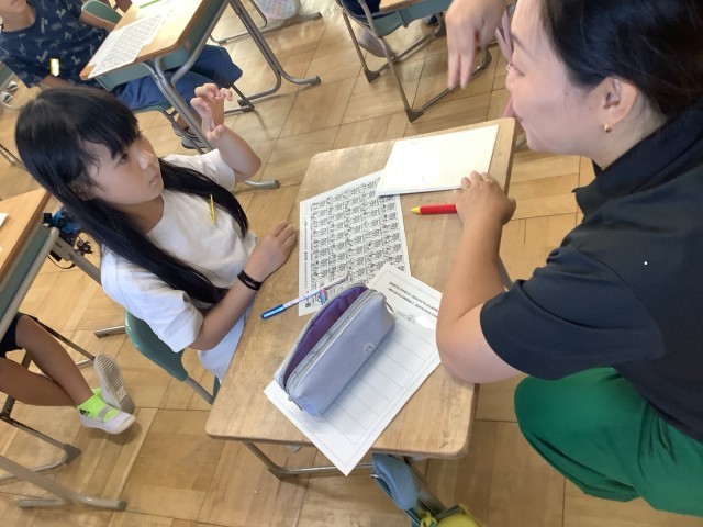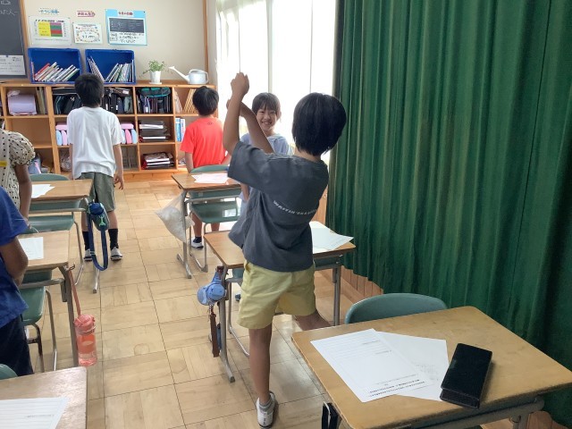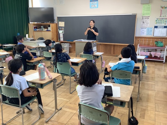音がなくても伝えたいことを伝える体験としてジェスチャーでの伝言ゲームをしたり、自分の名前の手話やあいさつの手話を教えてもらいました。