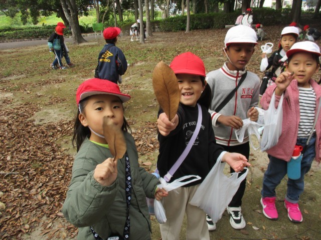 秋葉公園に、どんぐりや松ぼっくりなど秋の宝物を探しに行きました。