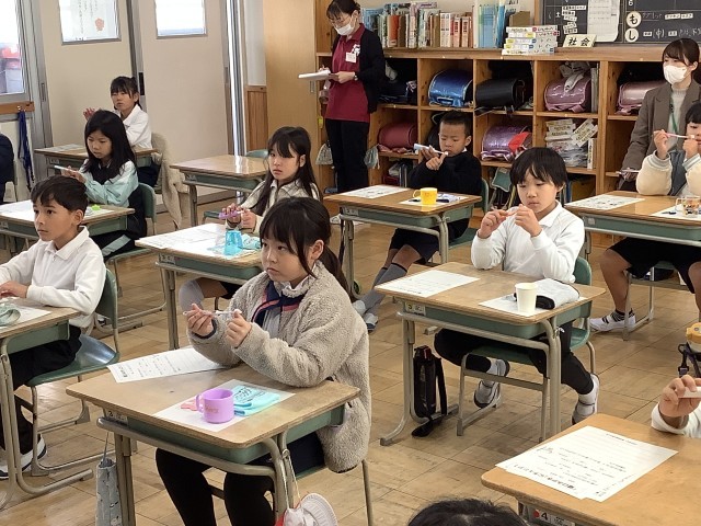 歯科衛生士の方に来ていただき、歯に良い歯磨きの仕方を教えてもらいました。