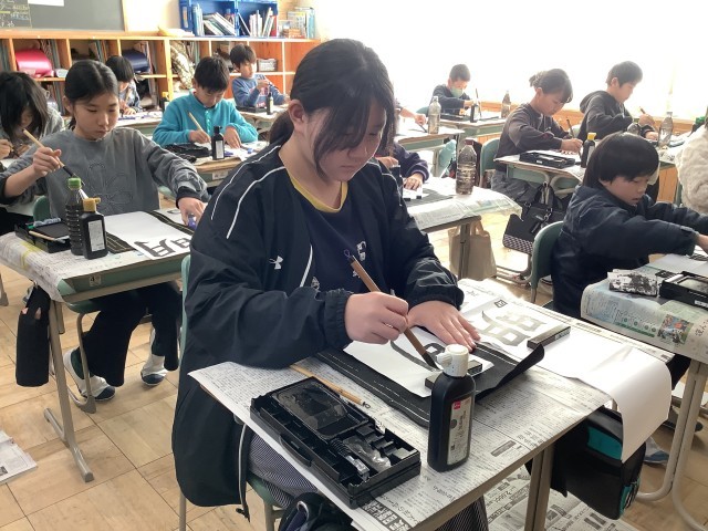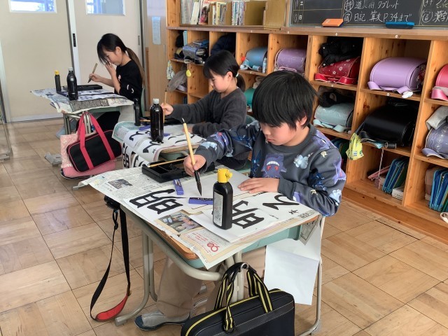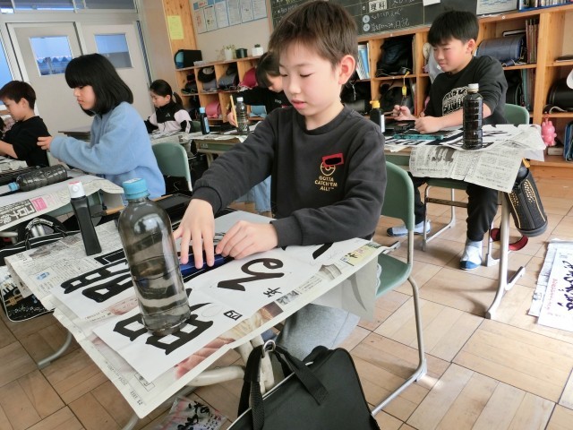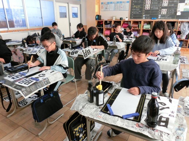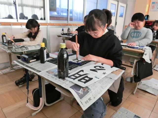 書き初め会がありました。良い緊張感の中、集中して取り組むことができました。