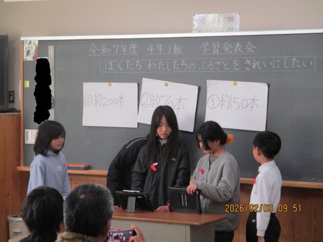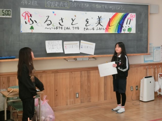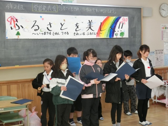 4年生 学習発表会 「ふるさとを きれいで 住みやすい 町にしよう」
